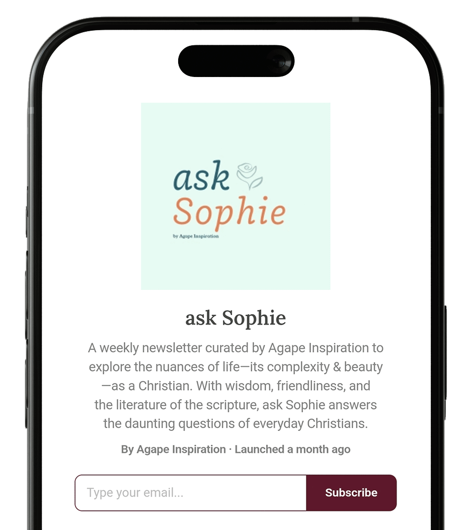 With love for everyday people and their purpose Inspiring impactful living through the word & love of God Read our articles For the mind in a whirlwind. Learning to hear again. Lessons From David in Hard Times The Question of ‘Who am I?’ Trusting God in Uncertain Times When life doesn’t make sense For the mind in a whirlwind. Learning to hear again. Lessons From David in Hard Times Read More Tough Questions, Bible Answers in your email A monthly publication from Sophie at Agape Inspiration